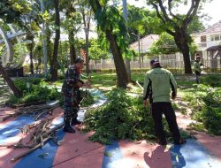 http://catatannews.id ][ Menteng ][ Kondisi cuaca yang terkadang tidak menentu dan sering terjadinya hujan disertai angin kencang menimbulkan banyak kerawanan, terutama pohon tumbang. Mengantisipasi hal tersebut, Babinsa Koramil 01/Menteng Serka Kusnadi bersama Sudin Pertemanan laksanakan penopingan pohon, bertempat di Taman Menteng Jl. HOS. Cokroaminoto, RT.3/RW.5, Menteng, Kec. Menteng, Jakarta Pusat. Minggu (17/11/2024).