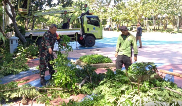 Danramil 01/Menteng Mayor Inf Ober Purba mengatakan, Penopingan pohon dilakukan dengan memangkas ranting-ranting di kanan kiri Taman, serta yang merapikan dahan yang sudah lebat yang khawatirkan dapat membahayakan warga masyarakat yang sedang berkunjung.