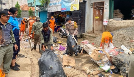 AIPDA Andri Ariana turun langsung bersama personel Polsek Jatinegara, TNI, serta perangkat kelurahan untuk membersihkan jalan, saluran drainase, dan fasilitas umum yang terendam lumpur dan sampah akibat banjir.