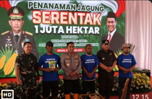 http://Catatannews.id ][ Bekasi ][ Penanaman jagung serentak seluas 1 juta hektar di seluruh Indonesia resmi dimulai di Kebun Jagung, Kota Harapan Indah, Desa Pusaka Rakyat, Kecamatan Tarumajaya, Kabupaten Bekasi, Selasa 21 Januari 2025.