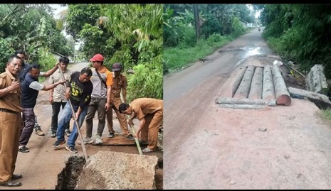 Langkah tersebut dilakukan agar kendaraan roda dua maupun roda empat tetap dapat melintas dengan aman, meski pengendara tetap diimbau untuk berhati-hati saat melintasi titik amblas tersebut.