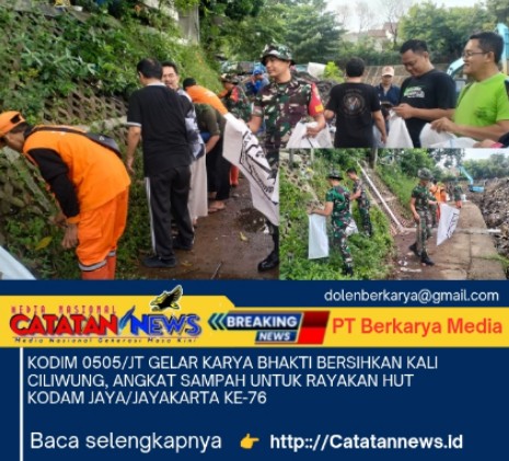 http://Catatannews.id ][ Jakarta Timur ][ Dalam rangka memperingati Hari Ulang Tahun (HUT) ke-76 Kodam Jaya/Jayakarta, ratusan personel dari berbagai instansi turun tangan membersihkan Kali Ciliwung di wilayah RW 01, 02, 03, 13, 14, dan 15, Kelurahan Bidara Cina Kecamatan Jatinegara Jakarta Timur, Sabtu (13/12/25).