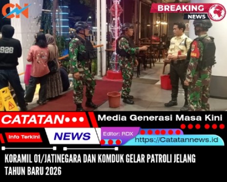 http://Catatannews.id ][ Jakarta Timur ][ Pasca perayaan Natal dan menjelang Tahun Baru 2026, Koramil 01/Jatinegara bersama unsur Komduk menggelar Patroli guna menciptakan situasi keamanan dan ketertiban masyarakat (kamtibmas) yang aman, nyaman dan kondusif pada Minggu Malam (28/12/25).