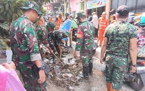 Di bawah pimpinan Danramil 05/Kramat Jati, Mayor Kav Lucky Dibyanto kegiatan karya bhakti kali ini ditujukan pada wilayah binaan yang terkena musibah banjir, baik pembersihan sampah ataupun pembersihan jalan dari lumpur.