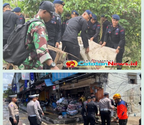 http://Catatannews.id ][ Denpasar ][ Kepolisian Daerah Bali bersama instansi terkait turun langsung membersihkan lokasi terdampak bencana pasca banjir bandang yang melanda Bali pada 10 September 2025. Aksi sosial ini berlangsung sejak Kamis (11/9) hingga Jumat (12/9) di berbagai titik di Denpasar dan sekitarnya.