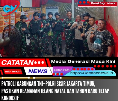 http://Catatannews.id ][ Jakarta Timur ][ Dalam rangka memastikan situasi keamanan dan ketertiban masyarakat tetap aman dan kondusif menjelang perayaan Natal dan Tahun Baru (Nataru), Kodim 0505/Jakarta Timur menggelar Patroli Keamanan Gabungan pada Minggu Malam (21/12/25).