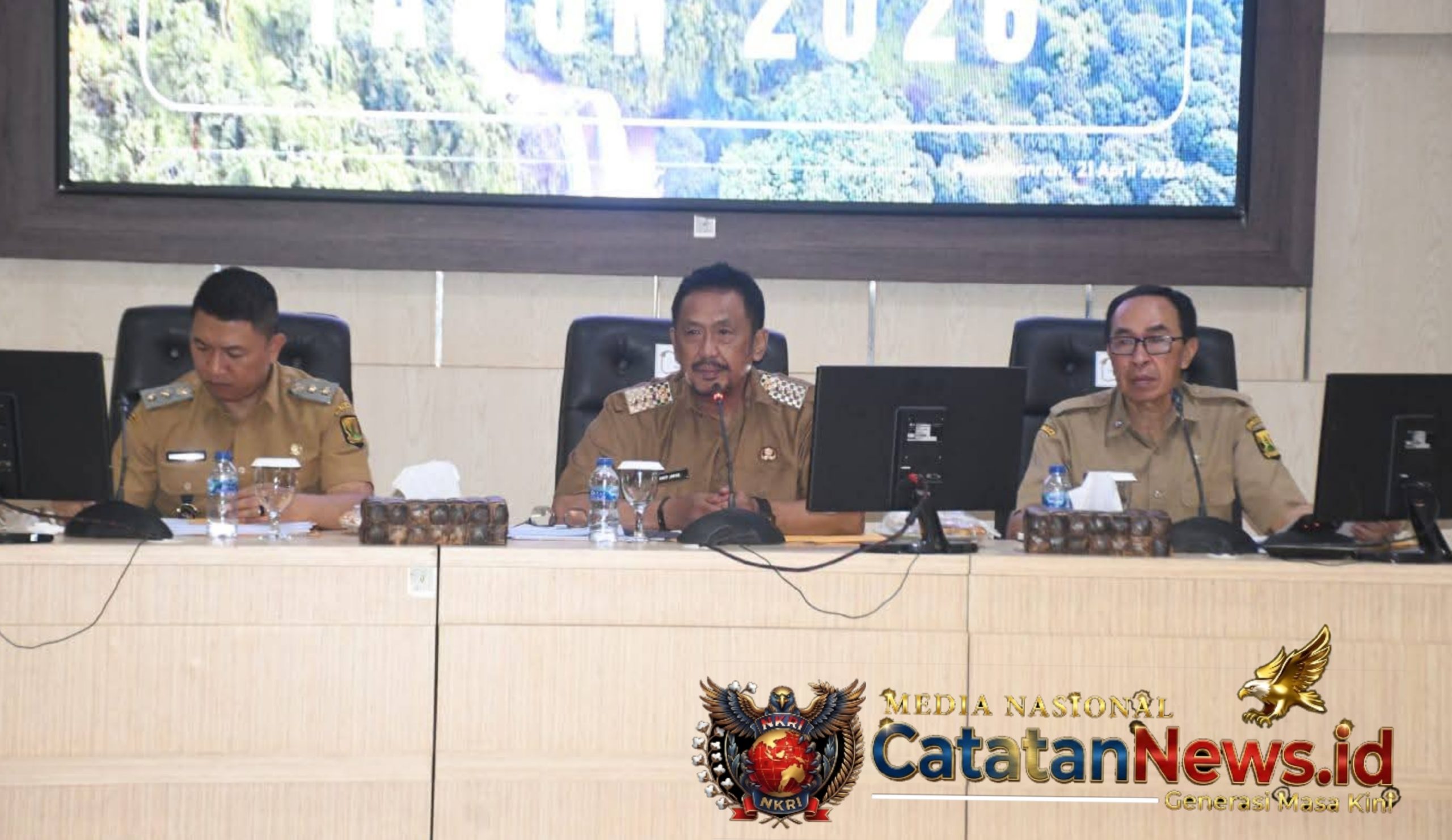 http://Catatannews.id ][ Sukabumi ][ Bupati Sukabumi H Asep Japar memimpin Rapat Dinas Bulan April 2026 yang digelar di Aula Sekretariat Daerah Kabupaten Sukabumi, Selasa (21/4/2026). Rapat yang dipandu Sekretaris Daerah H Ade Suryaman ini dihadiri Wakil Bupati H Andreas, kepala perangkat daerah, asisten daerah, staf ahli, kepala bagian, hingga para camat se-Kabupaten Sukabumi.