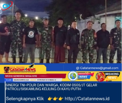 http://Catatannews.id ][ Jakarta Timur ][ Dalam rangka menciptakan wilayah yang aman dan nyaman, Koramil 04/Pulogadung bersama Komponen Pendukung (Komduk) menggelar kegiatan Patroli dan Siskamling Keliling pada Selasa Malam, (16/12/25).