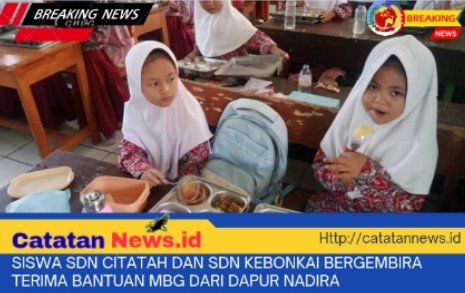 http://Catatannews.id //Kalapanunggal Sukabumi // Siswa SDN Citatah dan SDN Kebonkai, Desa Kadunungaal, Kecamatan Kalapanunggal, Kabupaten Sukabumi, Jawa Barat, bergembira menerima bantuan Makanan Bergizi Gratis (MBG) dari Dapur Nadira. Bantuan ini diserahkan langsung kepada siswa-siswa yang membutuhkan. 08/12/2025.