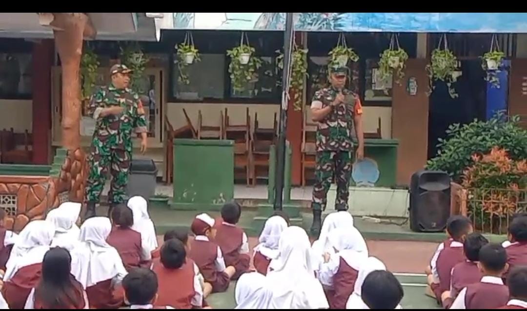 http://Catatannews.id ][ Jakarta Timur ][ Bertempat di SDN 27 Pagi, Jalan Skip Ujung Kelurahan Utan Kayu Selatan Kecamatan Matraman Jakarta Timur, Babinsa Koramil 02/Matraman memberikan materi Wawasan Kebangsaan (Wasbang) kepada siswa-siswi, Selasa (15/07/2025).