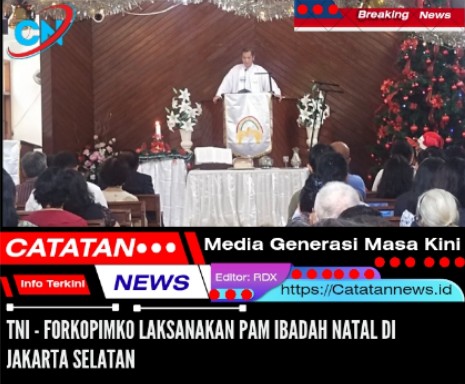 http://Catatannews.id ][ Jakarta Selatan ][ Kodim 0504 Jakarta Selatan bersama Forkopimko melaksanakan pengamanan perayaan ibadah Natal 2025 di Gereja Gereja wilayah Jakarta Selatan Kamis (25/12/2025).