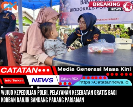 http://Catatannews.id ][ Padang Pariaman ][ Sebagai wujud kepedulian terhadap masyarakat terdampak bencana alam, Bidang Kedokteran dan Kesehatan (Biddokkes) Polda Sumatera Barat menggelar kegiatan bakti kesehatan bagi korban banjir bandang di Desa Huntara, Kelurahan Pasie Laweh, Kecamatan Kayu Tanam, Kabupaten Padang Pariaman, Sumatera Barat, Minggu (28/12/2025).